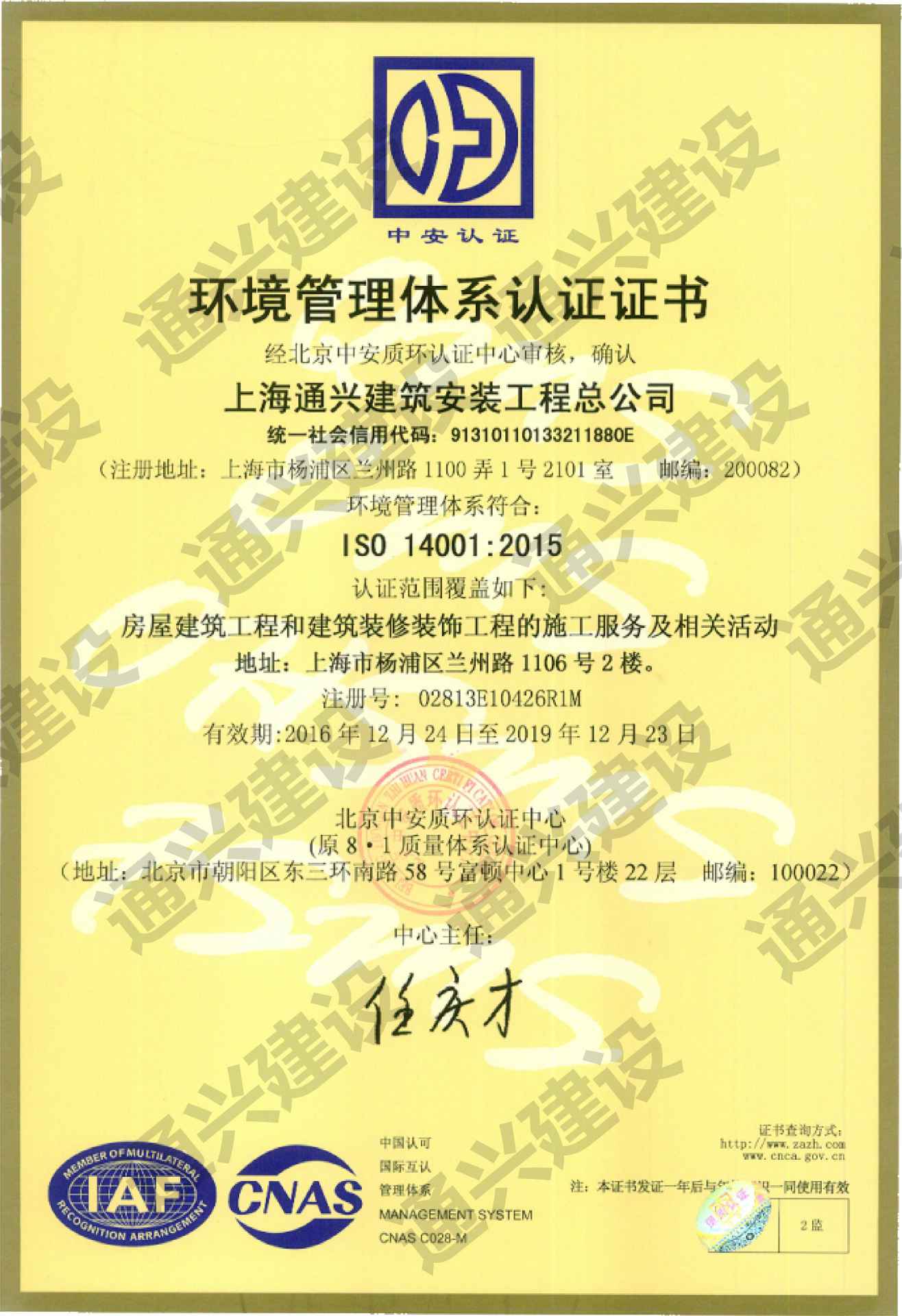 环境管理体系认证书